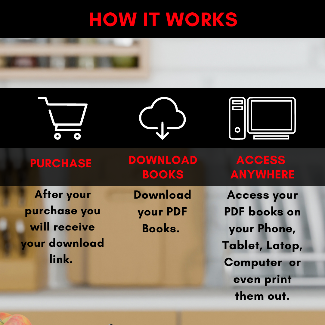 Food & Fitness Recipe Books are emailed to you in a handy PDF Format that can be accessed at home, work and on your smartphone, leaving you with NO EXCUSES!